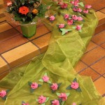 Während des Gottesdienstes wurden Lob und Dank in Blumen geschrieben und als Blumenteppich zum Altar gebracht. (Bild).